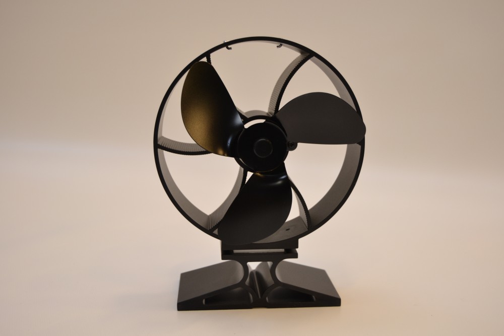 Meget smart vifte som sprer varmen fra ved ovnen ut i rommet uten tillkobling til stikkontakt eller batteri.