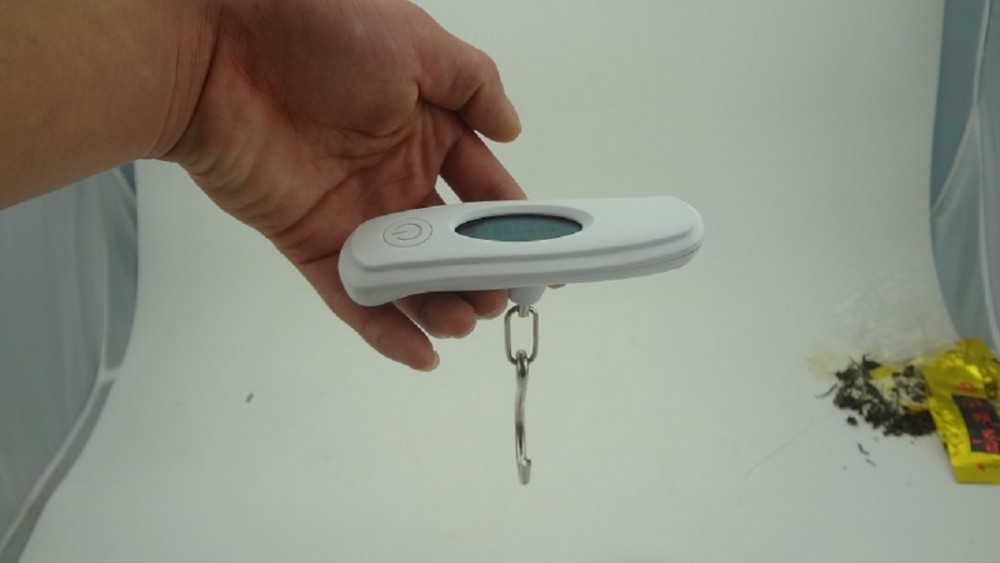 Liten og lett bagasjevekt som veier ting fra 0 til 50 kg med interval på 10 og 10 gram.
