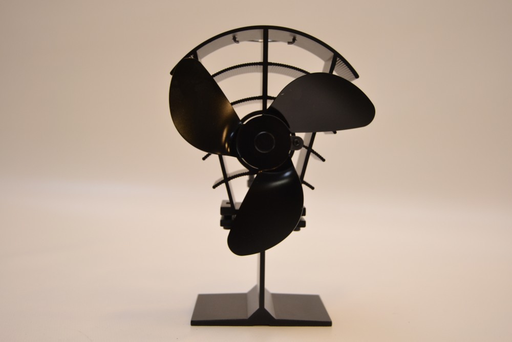 Meget smart vifte som sprer varmen fra ved ovnen ut i rommet uten tillkobling til stikkontakt eller batteri.